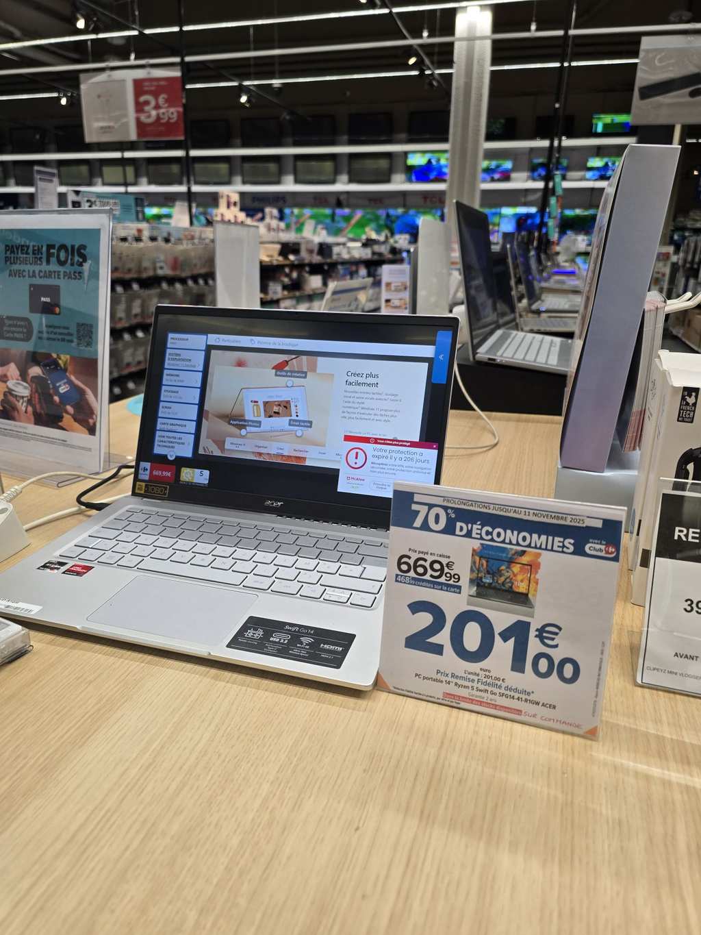 Points forts: écran 14 pouces Full HD IPS mat pour une lisibilité optimale, poids plume de 1,3 kg et une dalle qui reste confortable même en plein soleil. Le stockage SSD assure des démarrages rapides et des chargements quasi instantanés, tandis que les 16 Go de RAM permettent le multitâche sans ralentissements.