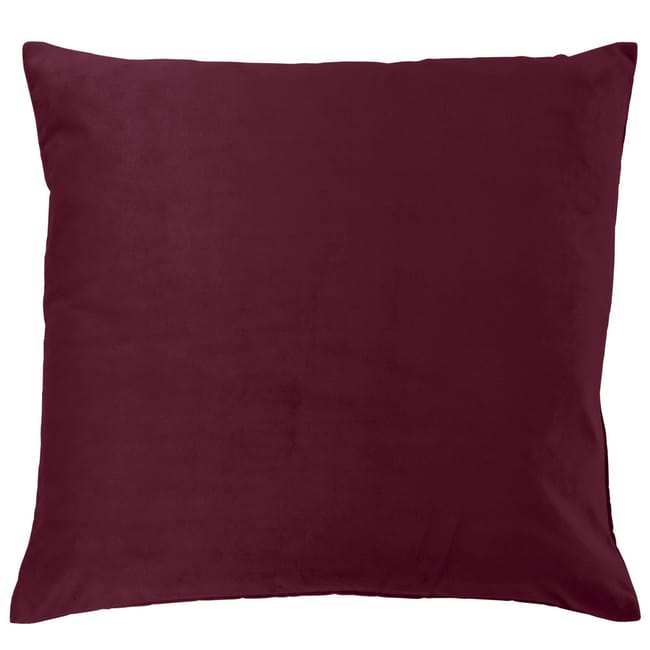 Caractéristiques clés : forme carrée, dimensions 45 x 45 cm, housse en polyester et remplissage polyester, couleur rouge. Le velours offre une sensation agréable au toucher et une vraie présence visuelle, tandis que le polyester assure durabilité et entretien simple.