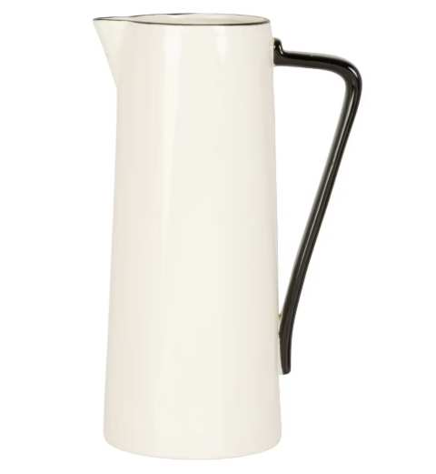 Ce pichet en grès blanc et noir, issu de la collection Louisa, est conçu pour un usage quotidien. Sa capacité de 0,9 L est parfaite pour servir eau, jus ou apéritifs sans encombrer la table. Il offre une finition bicolore élégante qui s’harmonise avec la plupart de vos vaisselles et décorations, et sa matière grès assure une résistance et une tenue dans le temps lorsque vous lavez ou manipulez.