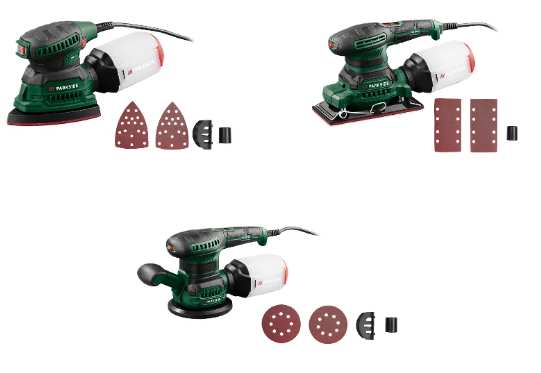 Vue densemble: Parkside propose trois modèles qui partagent le même cœur: alimentation secteur, 6 niveaux de vitesse à vide, et compatibilité avec les papiers abrasifs standard. Que ce soit une ponceuse vibrante, multifonction ou excentrique, chacune offre: